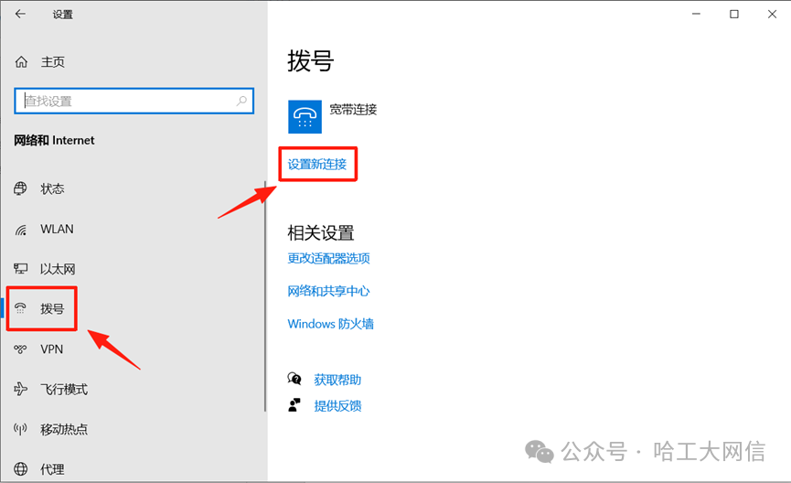 1. After connecting the network cable, open Network and Internet Settings, click Dial-up, then select Set up a new connection.