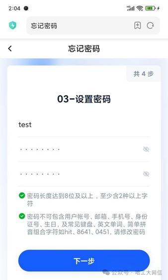 Step 3: Set a New Password: Remember it must meet the 8 characters + two types of character combinations requirement. Don't set it as your birthday again!