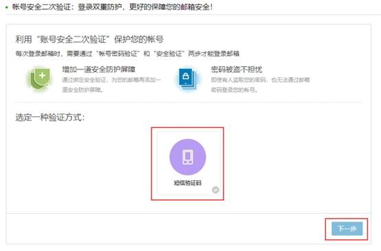 When logging into the email for the first time, a two-factor authentication interface will pop up. Select SMS Verification Code and proceed to the next step, enter your mobile phone number, send the verification code, then input the received verification code and click the Confirm button to enable two-factor authentication.
