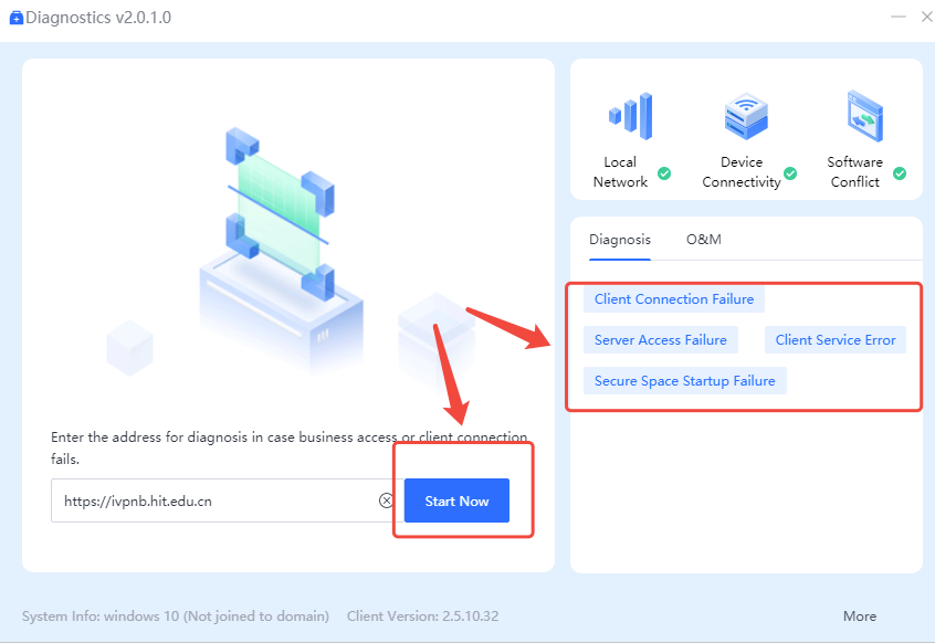 2)If not, open the client and click diagnosis and repair to check whether the environment is normal;
